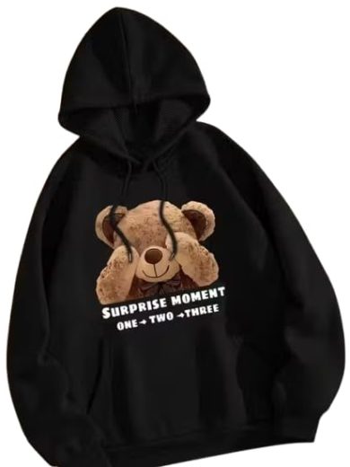 Teddy Surprise Printed Hoodie for Girls – Soft Cotton Blend Long Sleeve Winter Wear