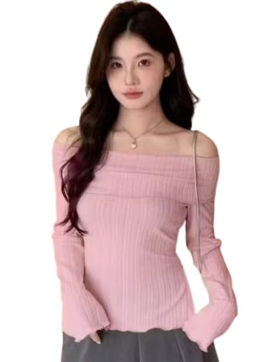 Women’s Off Shoulder Slim Fit Top – Stylish Long Sleeve Polyester Preppy Top for Party & Casual Wear