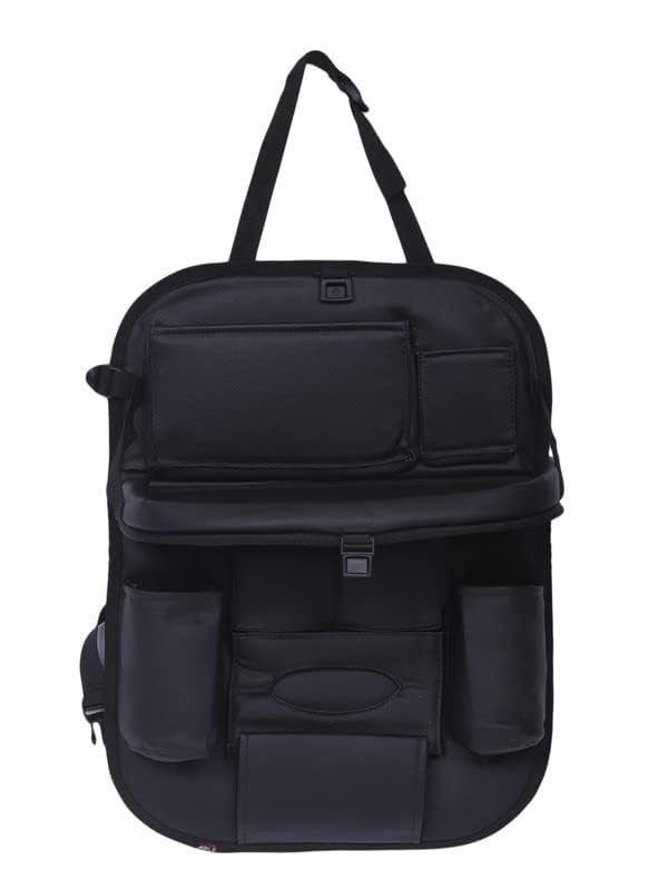 Car Backseat Organizer with Multi-Pockets – Leather Car Seat Back Protector with Foldable Table Tray – Travel Storage Bag for Kids & Adults – Universal Fit (Black)
