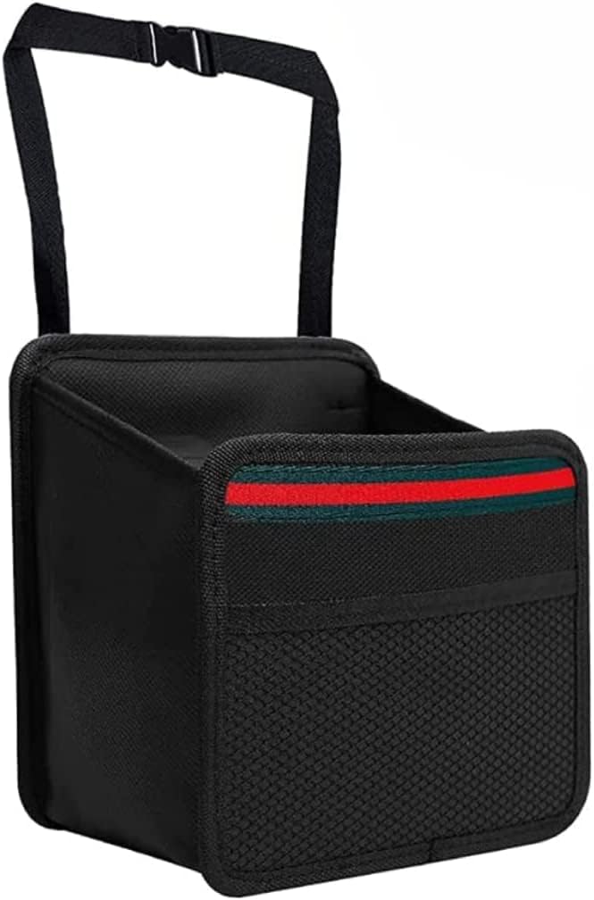 Car Trash Can with Lid β Waterproof Hanging Garbage Bin with Adjustable Strap β Compact Car Organizer with Front Mesh Pocket β Leakproof and Easy to Clean (Black)